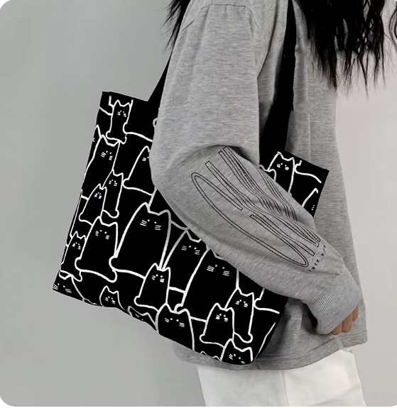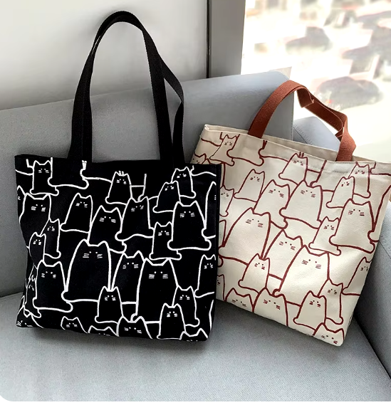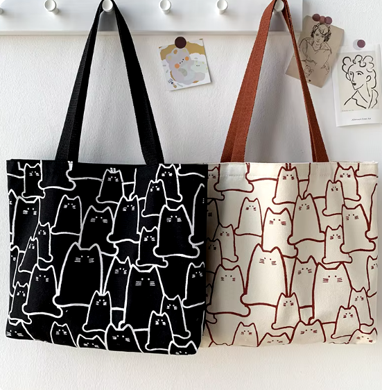 The Cute Cat Canvas Tote Bag combines charm and functionality in a Japanese-inspired design. Made from durable canvas, this handbag features an adorable cat print and secure zipper closure, ideal for daily use or shopping. Compact and lightweight, it offers easy shoulder wear, making it a perfect fit for carrying essentials with style and ease.