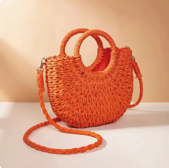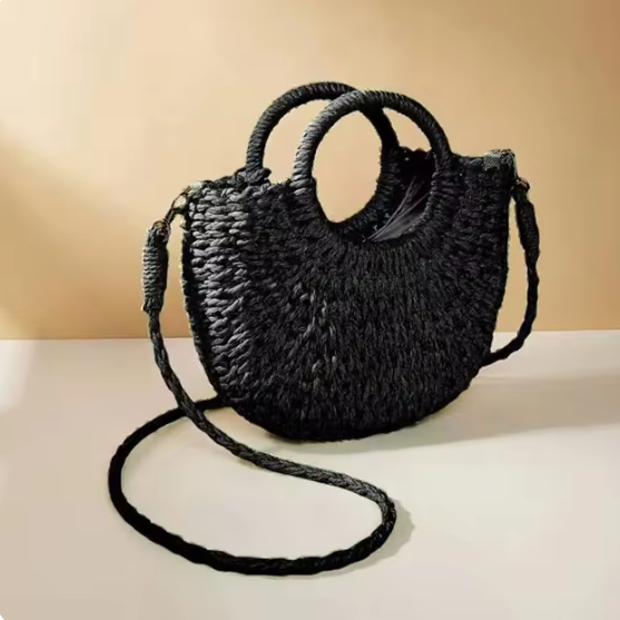 The Handwoven Straw Rattan Half-Moon Beach Handbag is a stylish and spacious accessory perfect for summer outings. Crafted from natural straw rattan, its hollowed-out design offers a breezy, beach-ready look. The half-moon shape and large capacity make it ideal for carrying essentials, while the crossbody strap adds versatility and comfort. Whether you're heading to the beach or a casual day out, this handbag combines a rustic aesthetic with modern practicality, making it a must-have for the season.