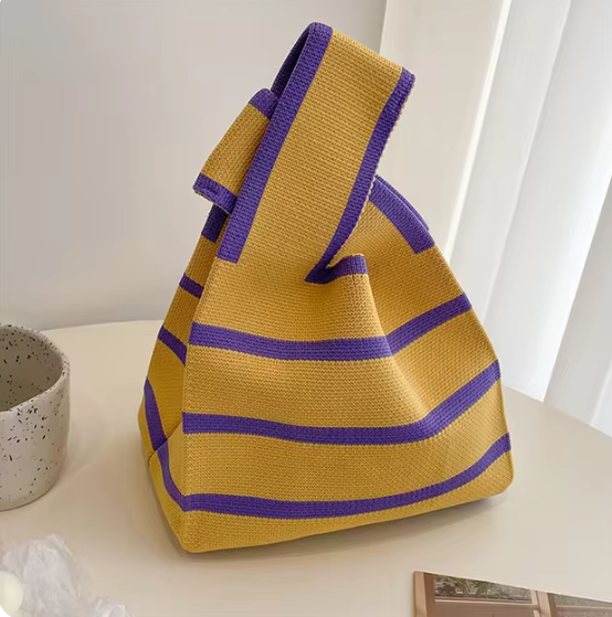 The Women’s Handmade Knitted Small Handbag is a charming, eco-friendly choice for casual outings and daily errands. Crafted with a knitted design and featuring wide, stylish stripes, this mini tote is both practical and unique. Its compact size makes it ideal for carrying essentials, while the reusable fabric makes it perfect for students and eco-conscious shoppers. Designed as a wrist bag or shoulder tote, it combines casual style with functionality, adding a touch of artisanal elegance to any look.