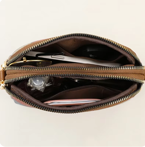 XOUHColor Block PU Leather Crossbody Bag - Double Zipper Women's Fashion Handbag